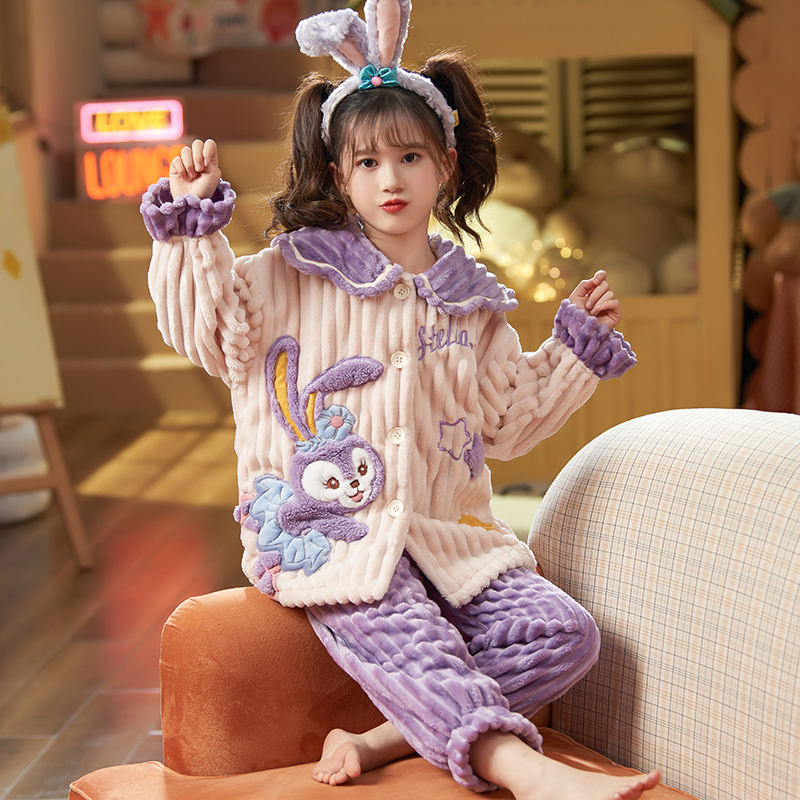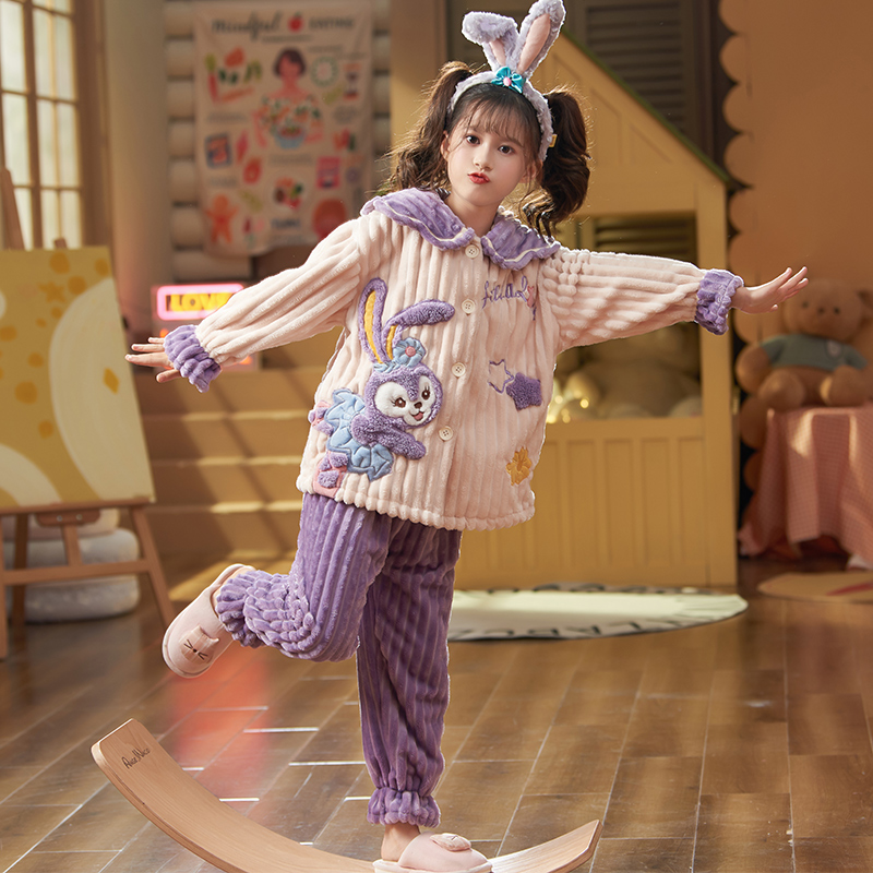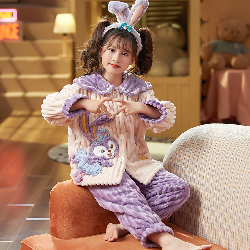 Children's coral velvet autumn and winter girl pajamas thickened flannel middle child Princess little girl home clothes