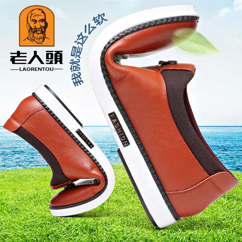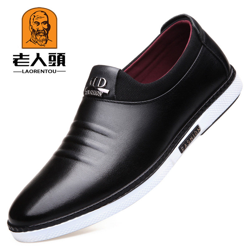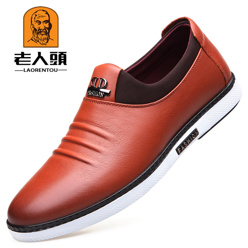 Old man's head men's shoes autumn men's casual leather shoes men's leather soft leather sets of feet British wild youth skate shoes men