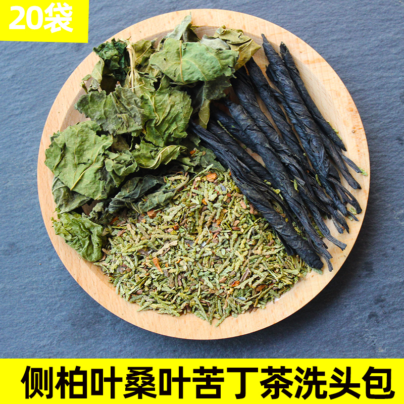 Arborvitae leaves, mulberry leaves, Kudingcha, raw hair, dark hair, dense hair, hair-raising shampoo, wild Chinese herbal medicine shampoo pack
