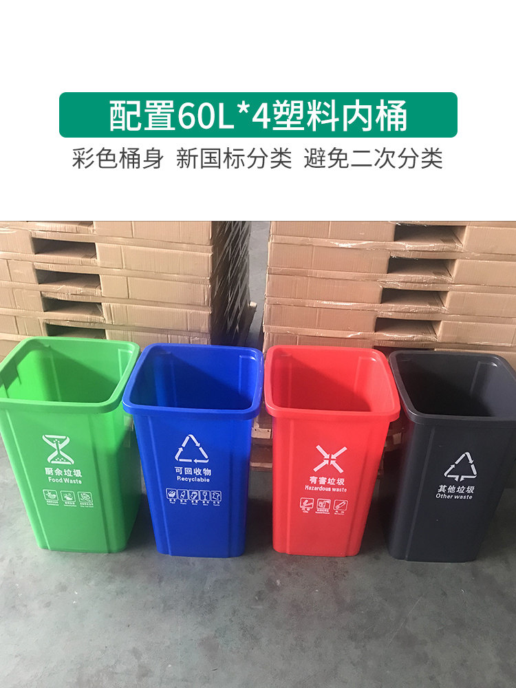 120L (recycling and others) 60L plastic bucket*2120L (food waste harmful) 60L plastic bucket*2240L Four classifications 60L plastic bucket*4