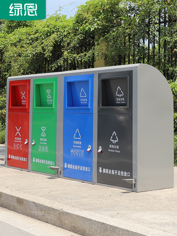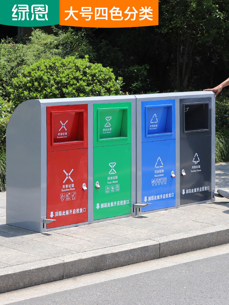 Large four-category pedal trash can 120L outdoor public community property sanitation outdoor trash can with cover