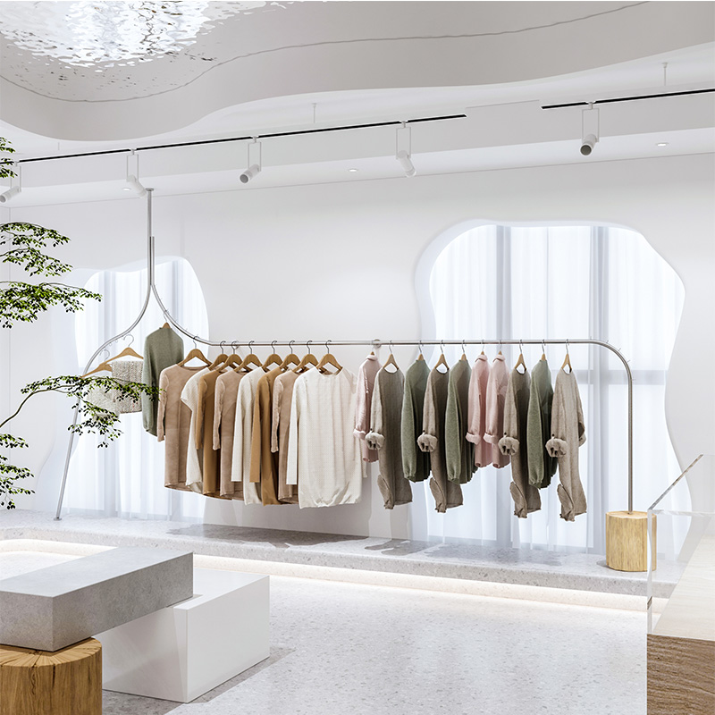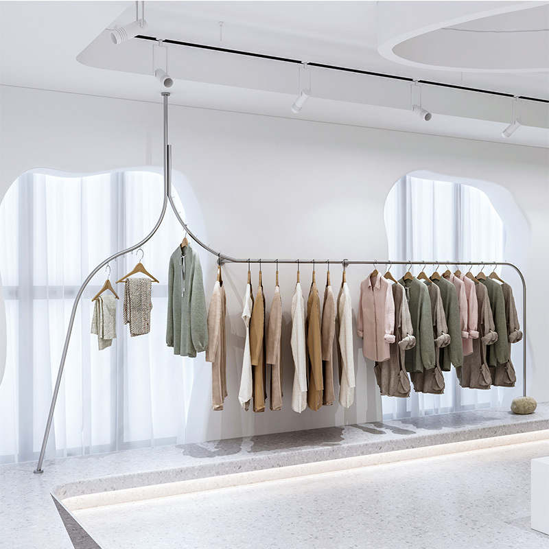 Clothing store display rack wall hanging side hanging custom shelves Men's and women's wall hanging hangers Shaped stainless steel rack