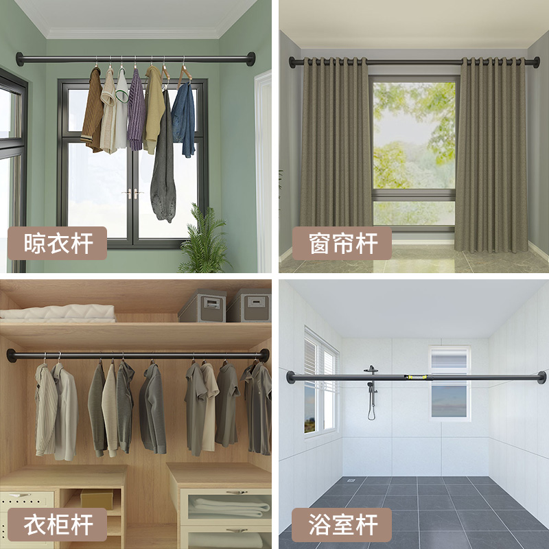 Non-perforated telescopic rod Bathroom shower curtain rod Curtain rod Wardrobe hanging clothing telescopic rod Powder room rack shrinkable drying rod
