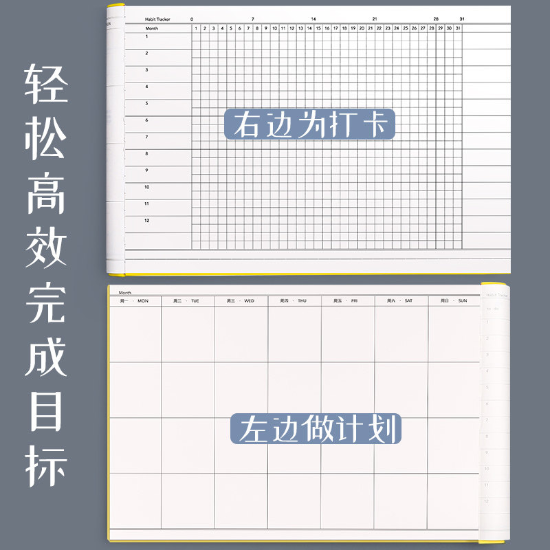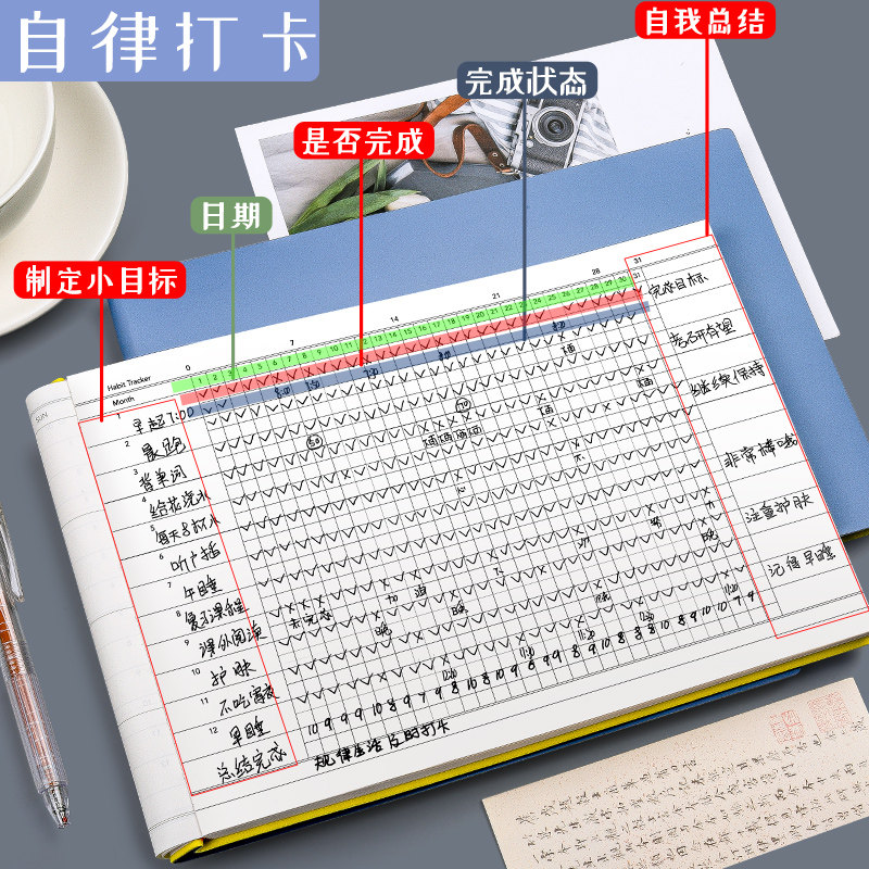 Self-discipline punch card this task plan This habit formation time management month week plan daily primary school student schedule mind map book sub table 2021 calendar examination research junior high school learning notebook