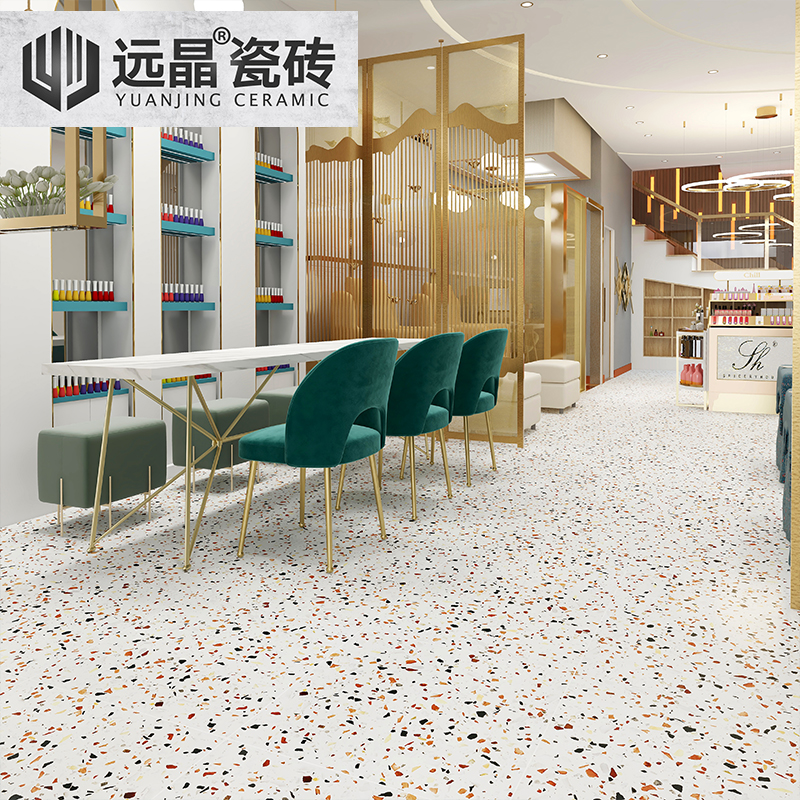 Yuanjing 600x600 color small particles terrazzo Living room floor tiles Shop Nordic non-slip matte kitchen and bathroom tiles