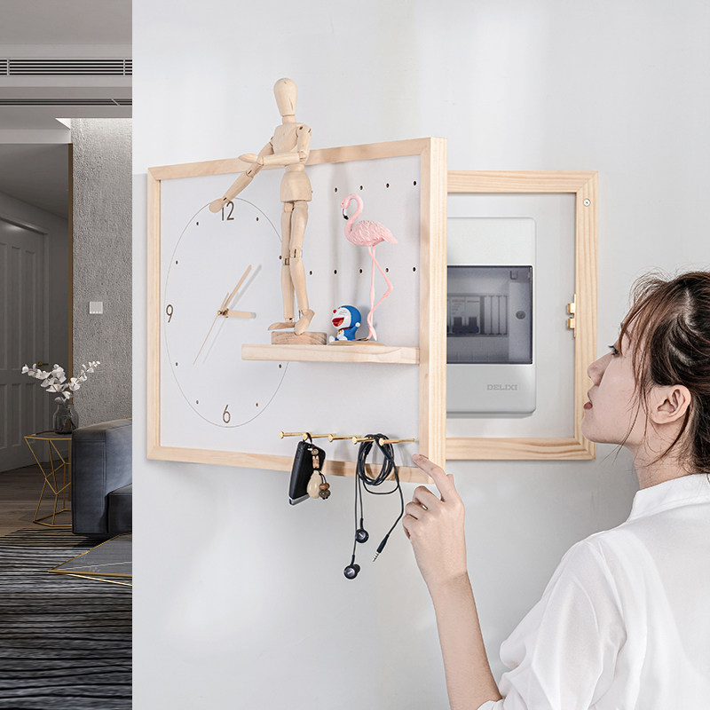 Electric meter box decorative painting with clock Nordic entry porch distribution box to block decorative clock hole plate shelf