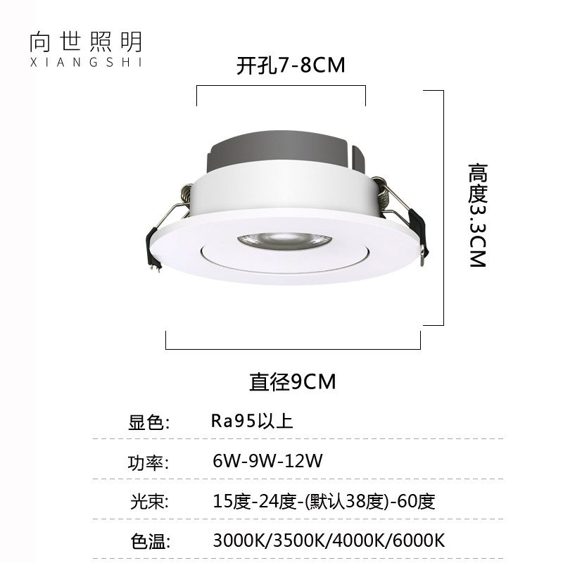 Xiangshi Lighting 3 3CM ultra-thin LED spotlight embedded ceiling light COB home high color rendering XS-06033T
