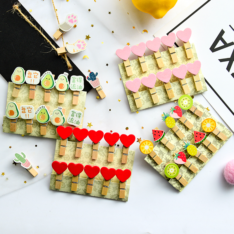 Polaroid photo wall wooden clip Post-it note clip Wedding love with hemp rope set small clip Photo clip small wooden clip