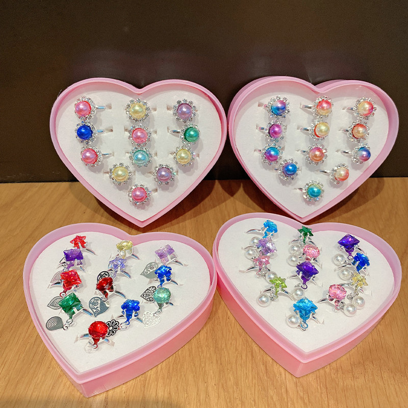Children's gemstone small ring Baby girl cute ring Jewelry Imitation diamond crystal toy Princess jewelry set