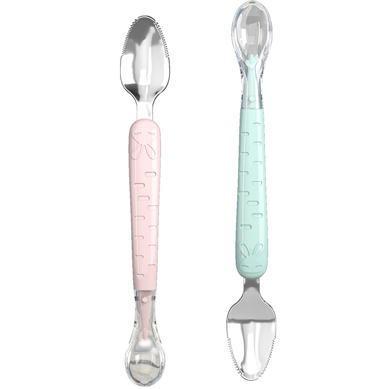 (Light Pink Rabbit) Dual-use Fruit Clay Spoon (304 stainless steel pacifier silica gel) (light green rabbit) Dual-use fruit mud spoon (304 stainless steel liquid pacifier silica gel) (light powder rabbit) Dual-use