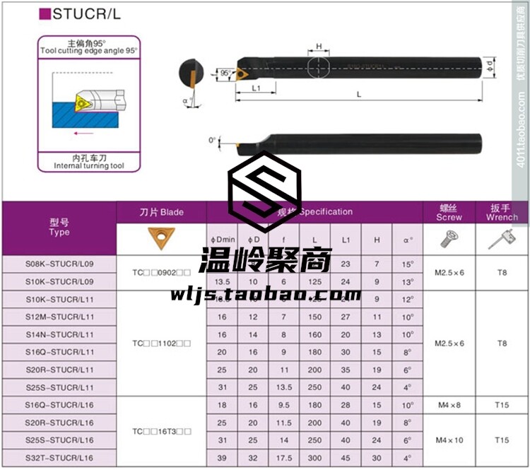 Inner hole numerical control knife lever S16Q-STUCR11 S16Q-STUCL11