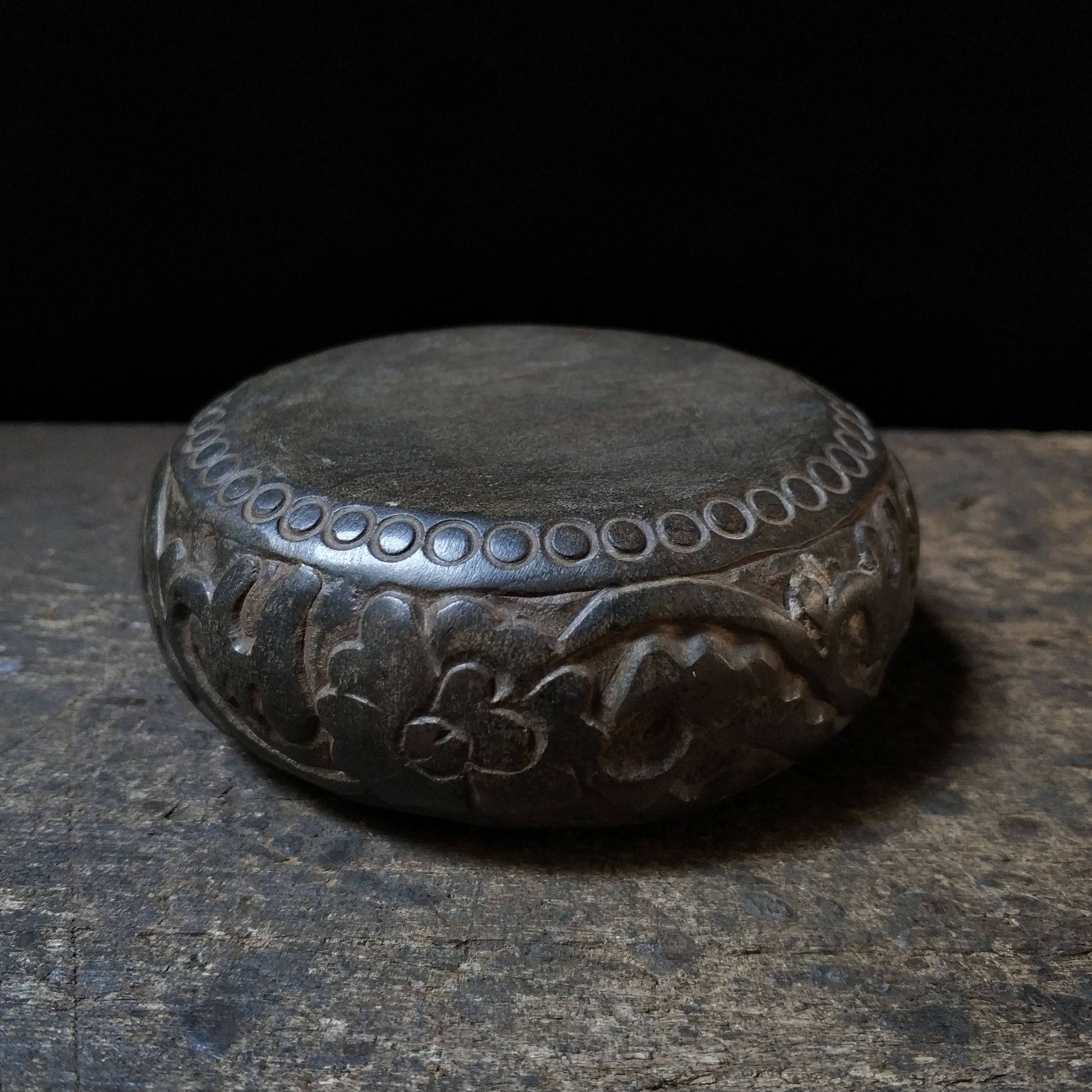 Small stone drum stone dun paperweight pure hand carved tea saucer coaster Chinese vintage home decoration bonsai flower stand ornaments