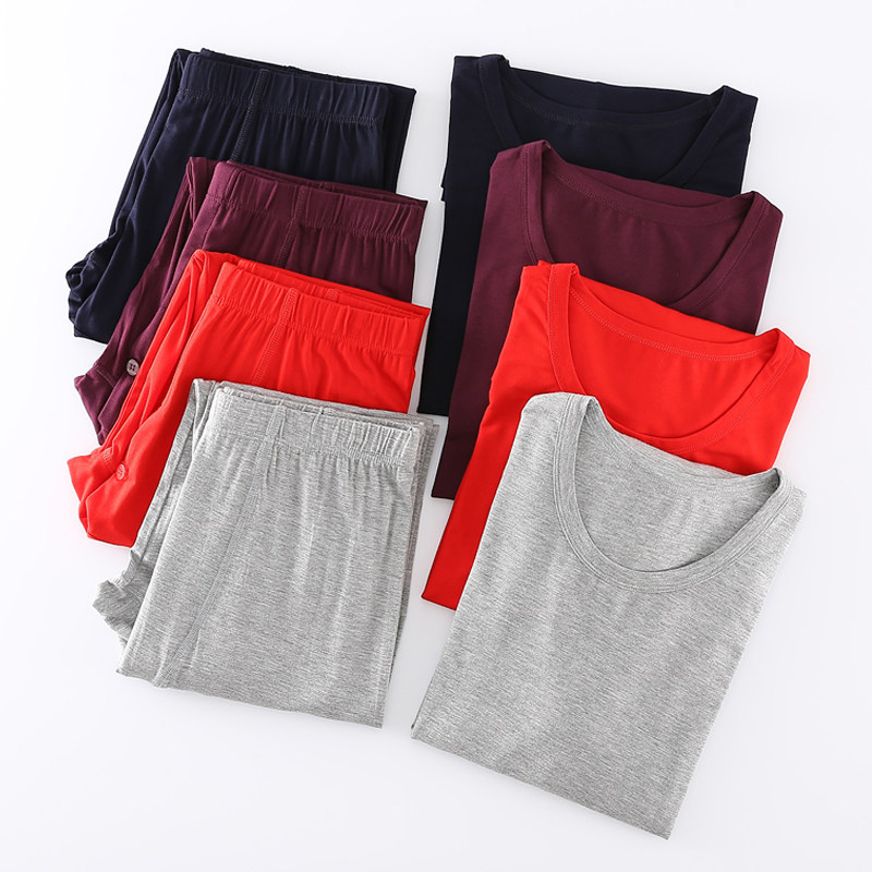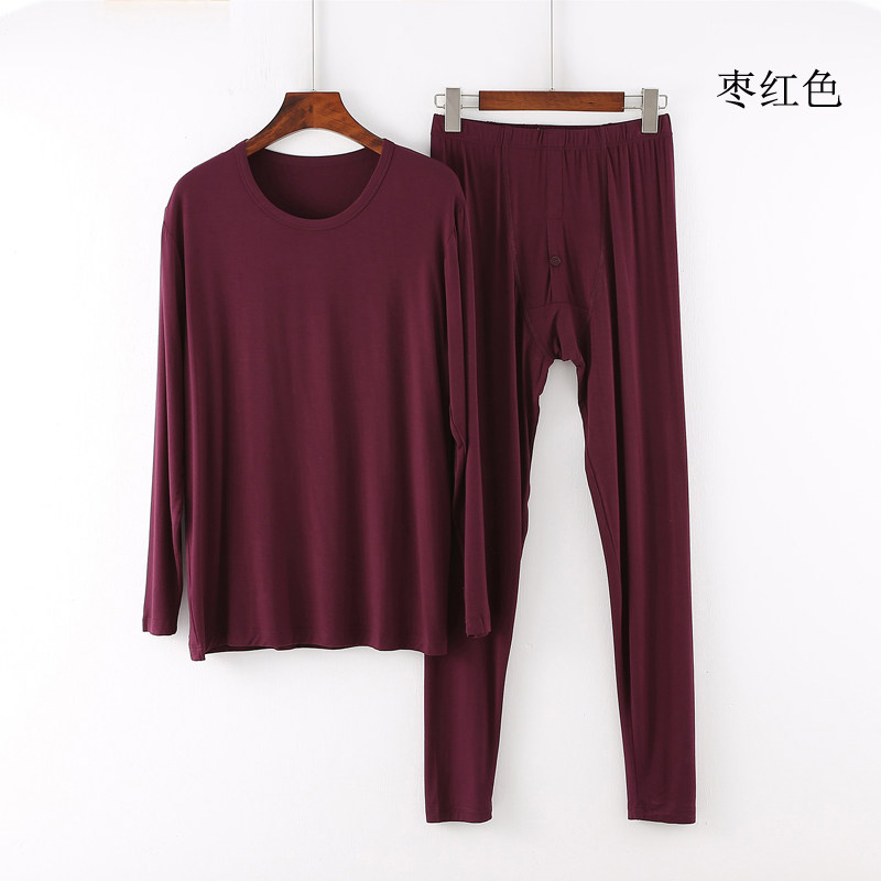 Men's modal suit autumn clothes sanitary pants Thin basic base heating clothes Slim men's top sanitary pants autumn and winter