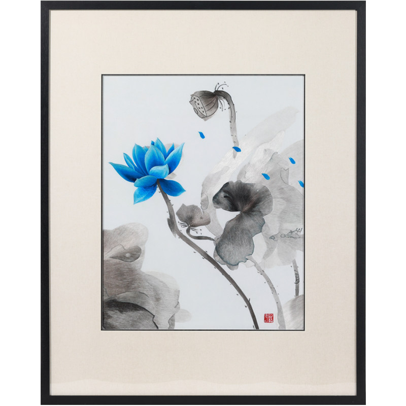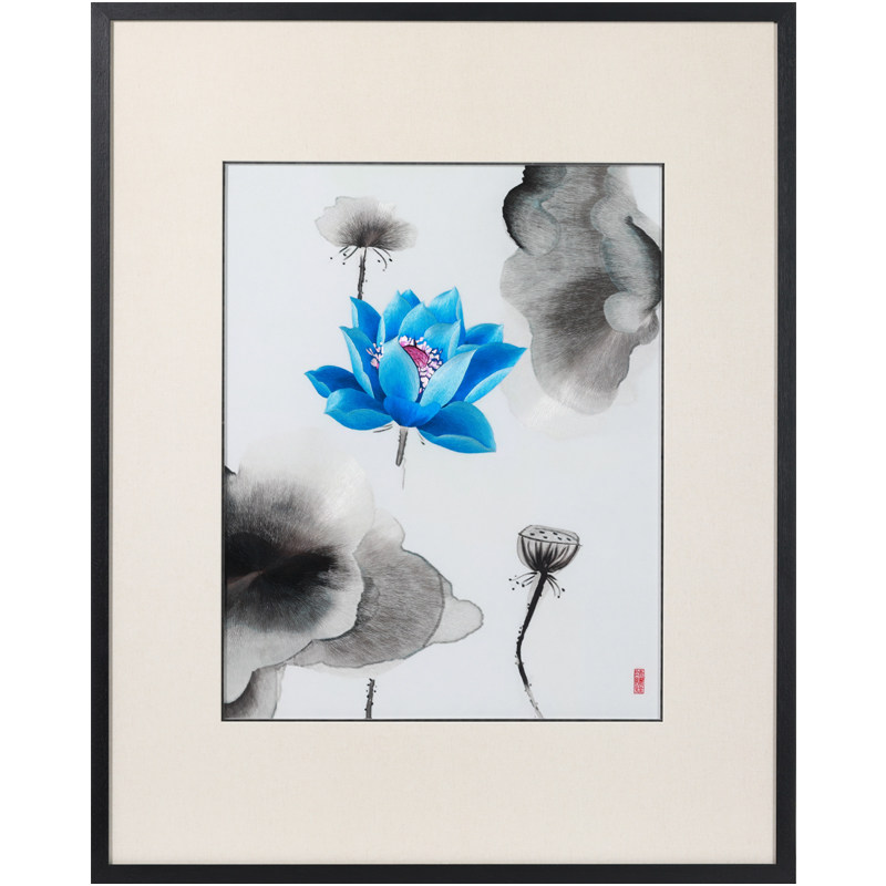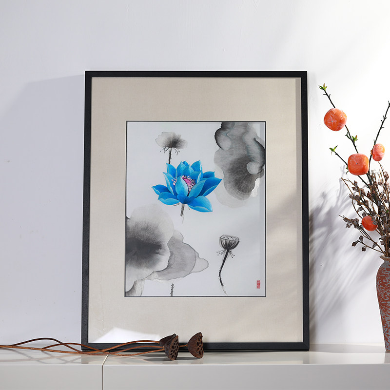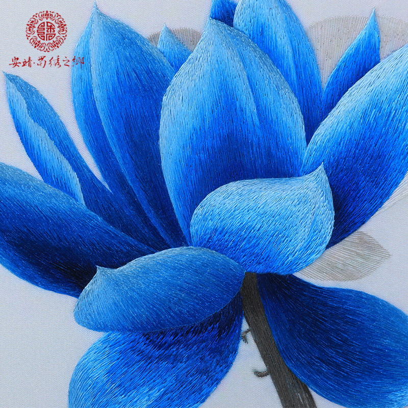Chinese wind lotus series intangible cultural heritage Shu embroidery boutique hanging painting hand embroidery crafts living room study decorative painting