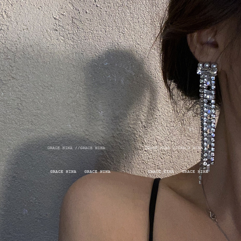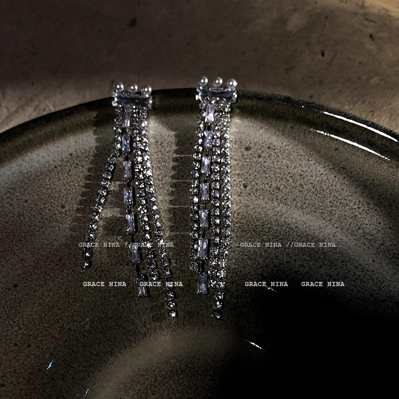 The focus of the audience long zircon tassel earrings 2021 new fashion earrings women's high sense fairy earrings