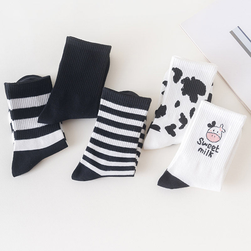 Nut mummy cow socks female middle tube socks ins tide cute black spring autumn winter Korean sports style stockings