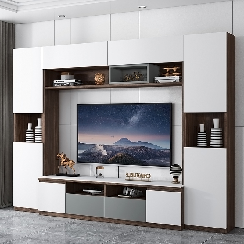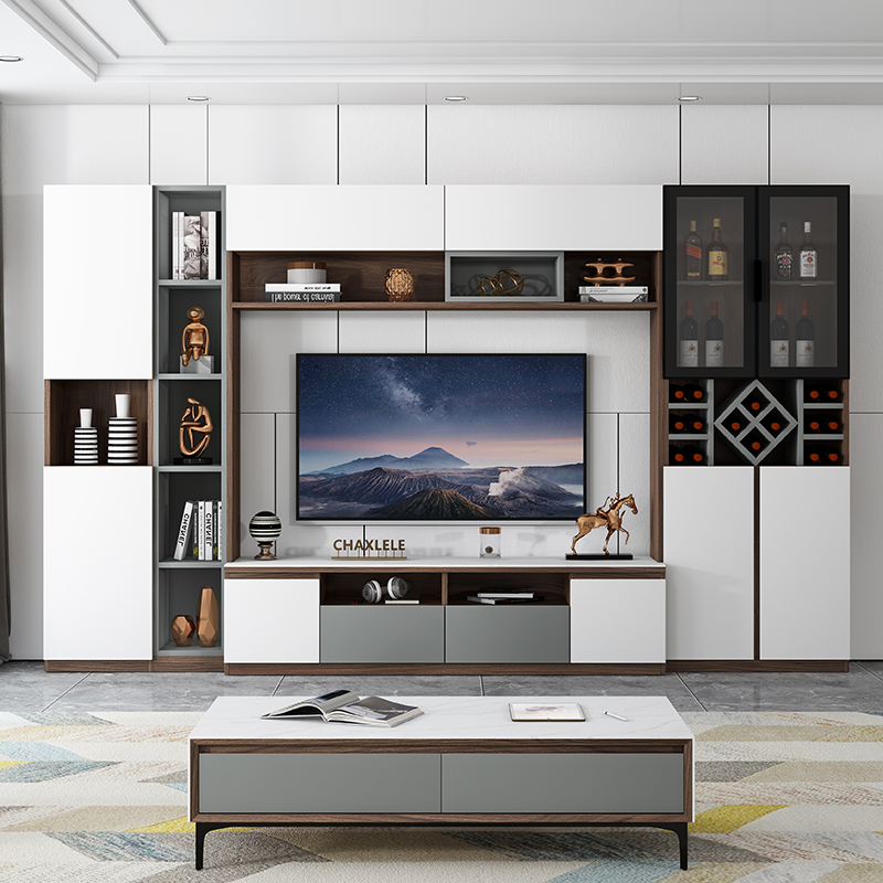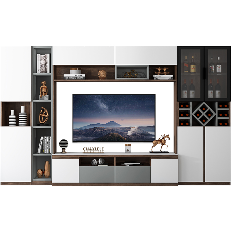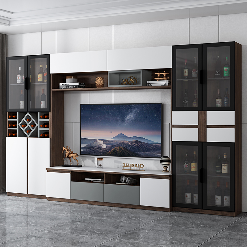 Living room all solid wood combination TV wall cabinet floor cabinet 65 inch TV cabinet overall background wall integrated cabinet light luxury wine cabinet