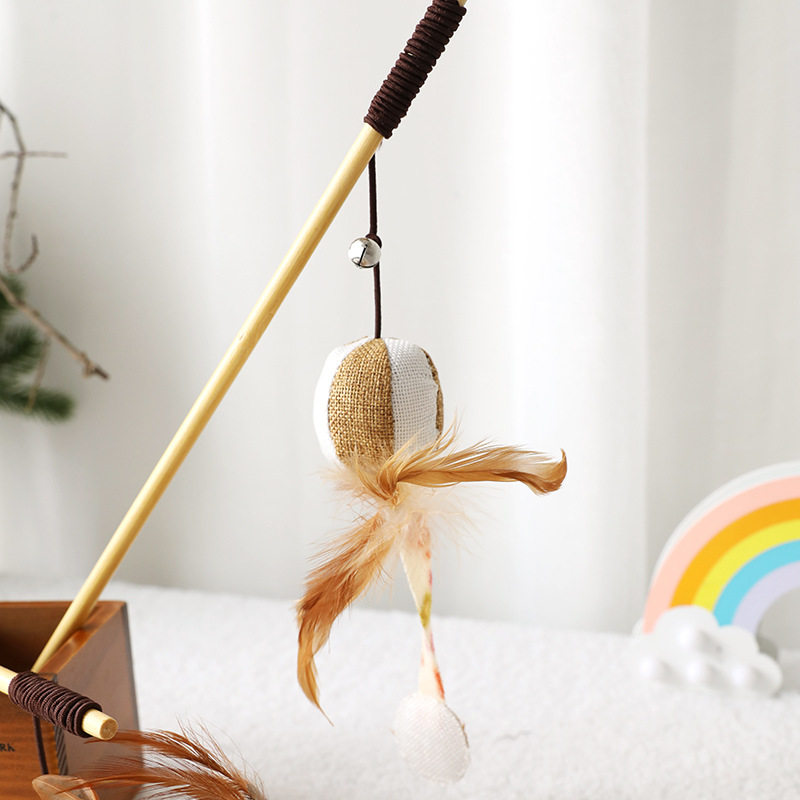 Cat toy wooden pole feather funny cat stick meow interactive self-hi sounding feather bell pumpkin ball