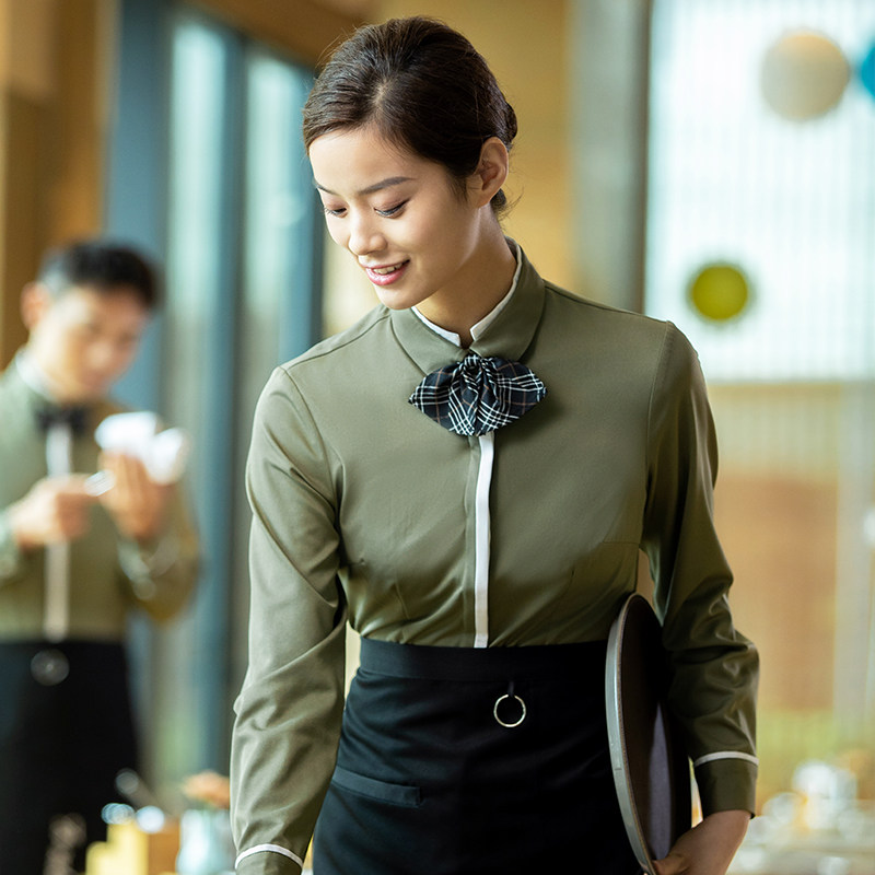 Waiter overalls female catering bar cafe western restaurant hamburger milk tea cake shop clothing autumn and winter long sleeves