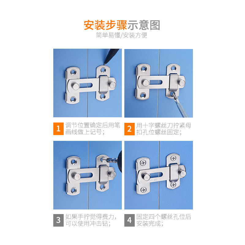 Non-perforated thickened stainless steel anti-theft buckle Door lock Household door bolt buckle window security buckle Door and window push-pull latch lock