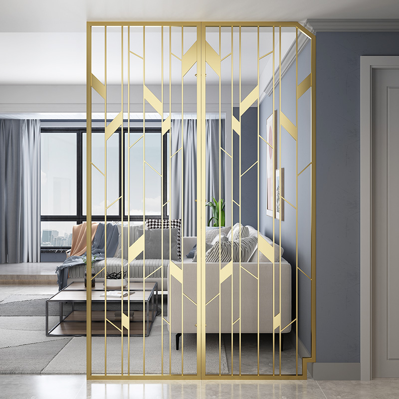 Gold light luxury stainless steel wrought iron screen partition living room simple modern new Chinese entrance lattice lattice decoration cutout