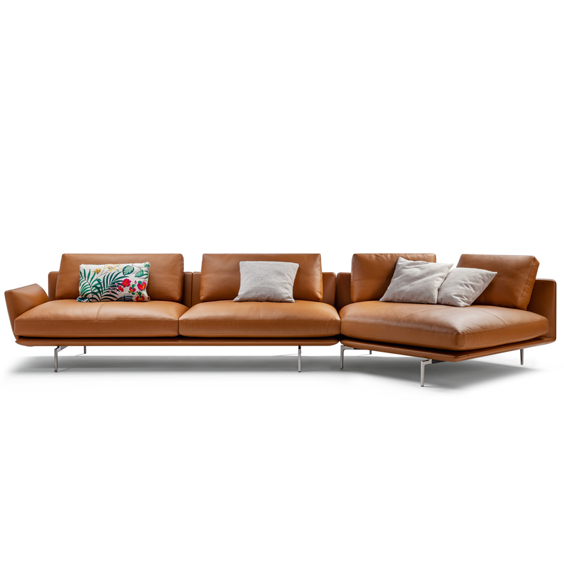 Italian luxury leather sofa Nordic simple modern small family shaped living room semicircle Italian curved cowhide