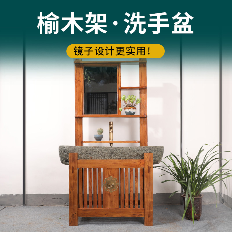 Chinese old elm wash basin combination outdoor stone wash handshafts old stone slot outdoor courtyard washing pool