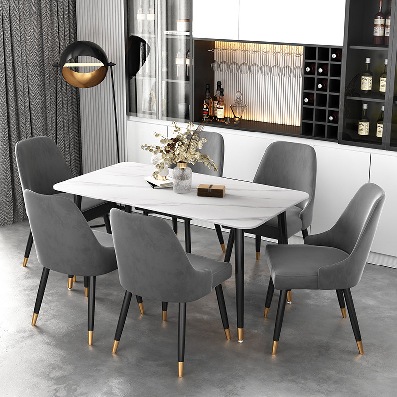 Nordic light luxury marble dining table home rock slab dining table and chair combination modern minimalist small apartment rectangular dining table