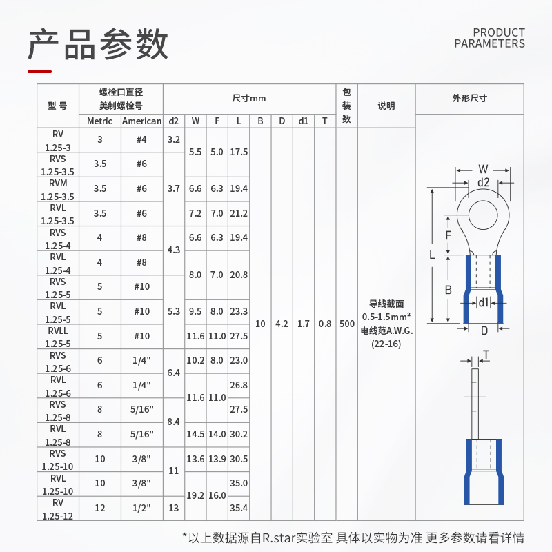 R star cold press terminal terminal RV1 25-3 2 Round O pre-insulated joint ear thickening anti-rust European type