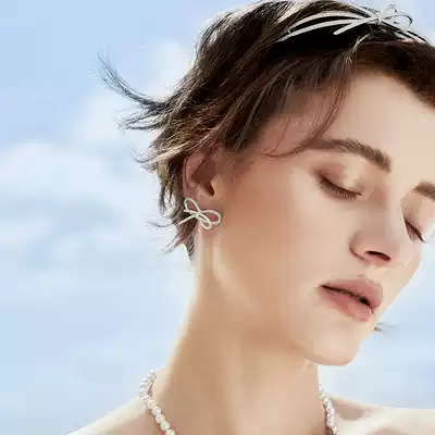 HEFANG He Fang jewelry bow stud ear Xu Jiaqi Zhang Ruonan same 925 sterling silver female temperament earrings