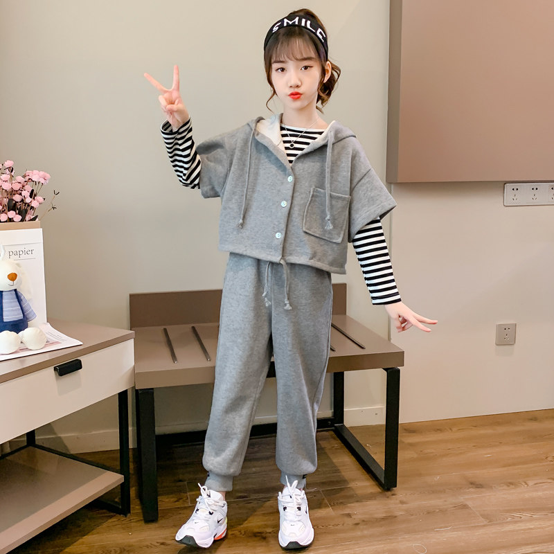 Net Red Girls Autumn Suit 2022 New 6 Western Style 9 Children's Middle and Big Children 7 Fashionable 5 Little Girls Ten Years Old Clothes