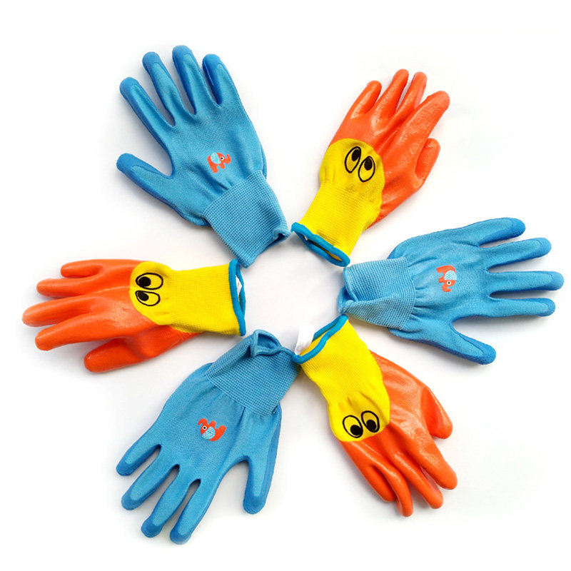 1 pair of yellow-orange children (3-8 years old) 1 pair of grass green latex gloves 3-6 years old 1 pair of pink latex 3-6 years old 1 pair of blue latex 7-11 years old 1 pair of pink latex 7-11 years old 1 pair