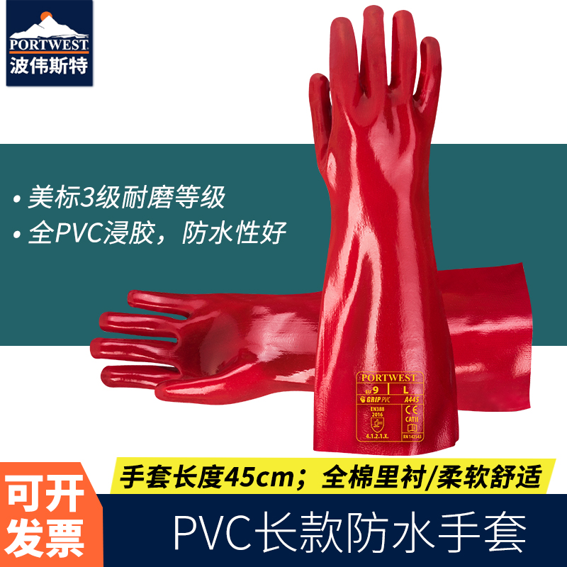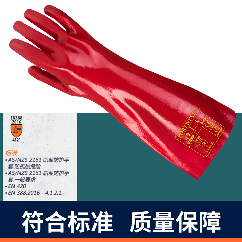 Portwest waterproof acid and alkali resistant environmental anti-microbial PVC wear-resistant tear-resistant long tube gloves
