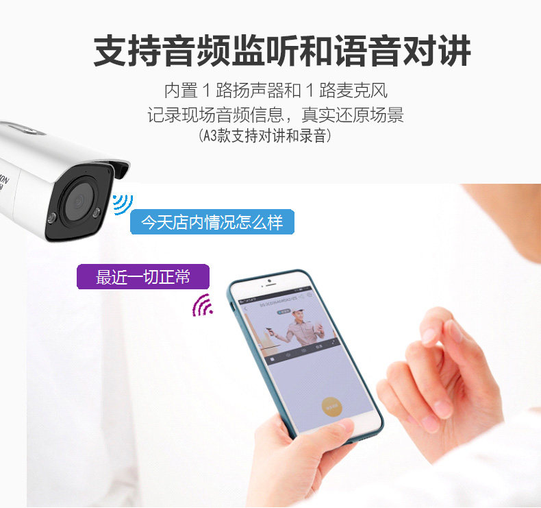 Hikvision 200W camera POE HD 4 million sound light alarm night vision outdoor monitoring 3T46DWD A1