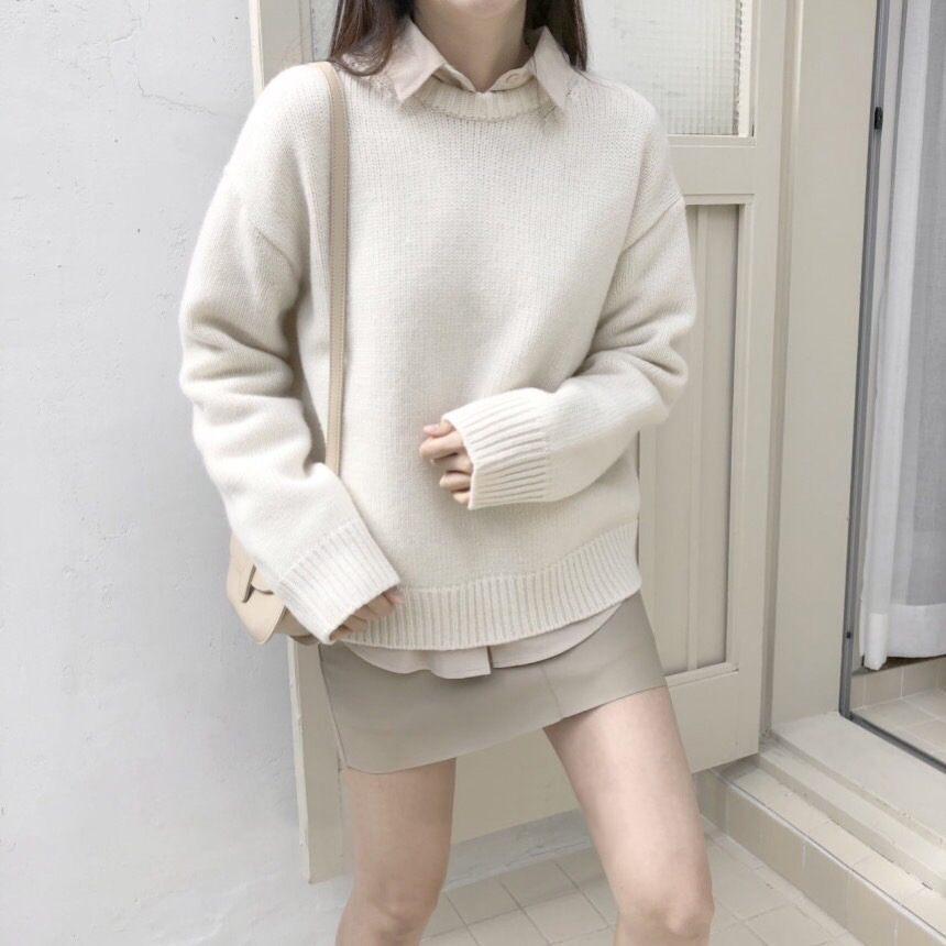 2020 Spring and Autumn New Korean Style Loose Macaron Knitted Sweater Lazy Wind Pullover Thick Purple Sweater Women