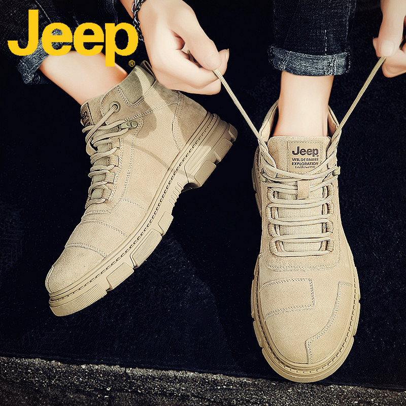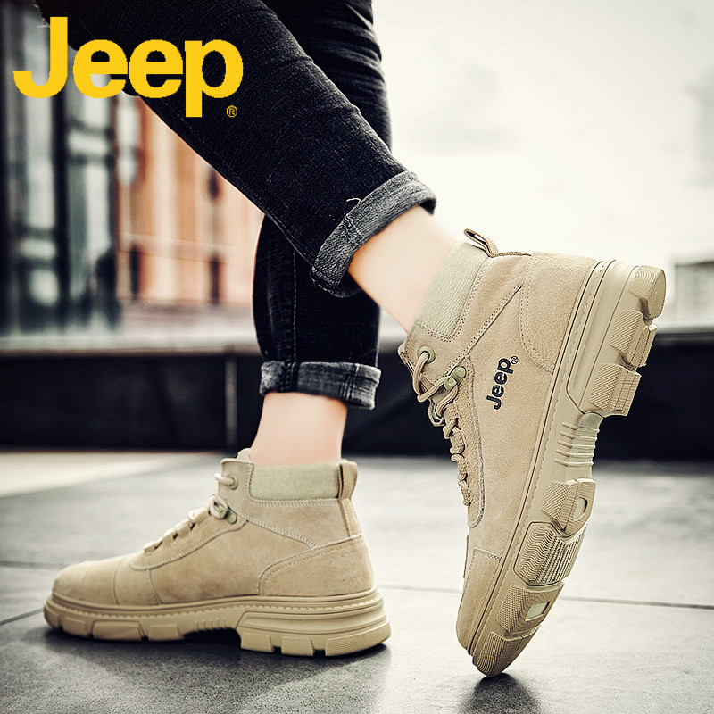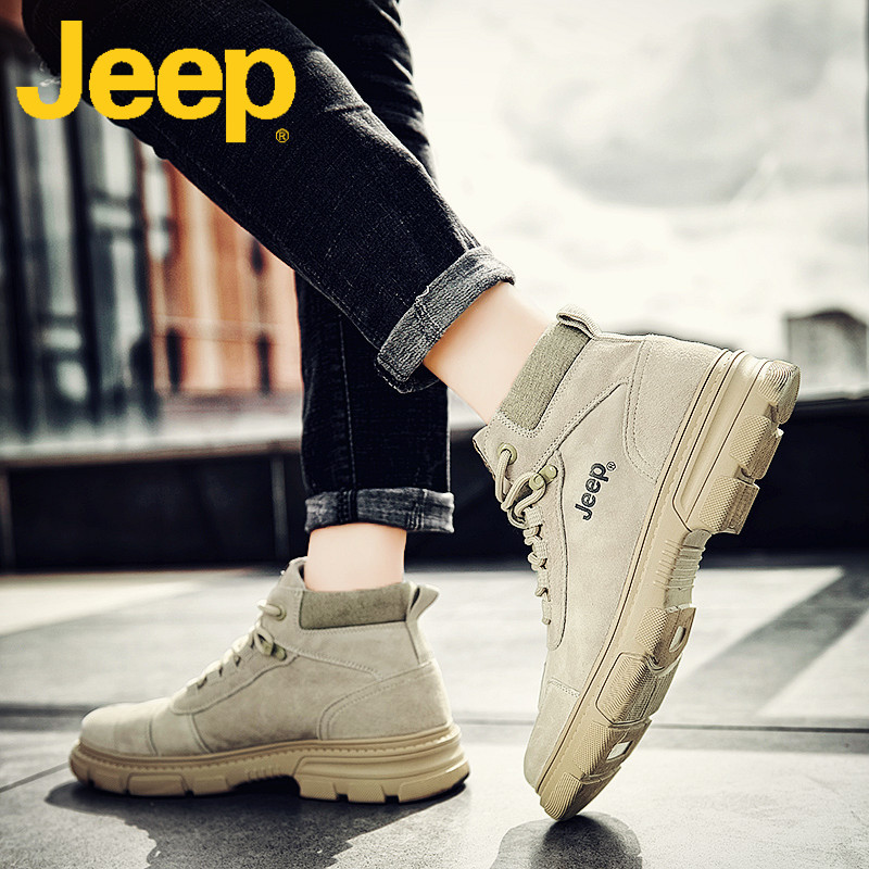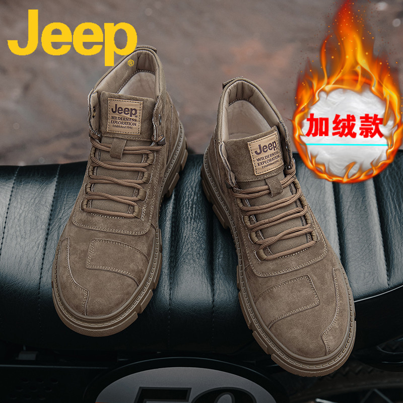 Jeep Jeep Martin Boots Men Middle-Upper Leather Boots Englen Summer Cotton Shoes Warm and Fitzy Snow Boots