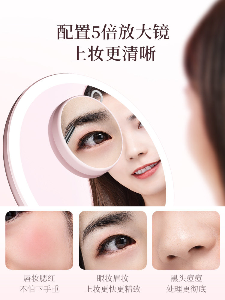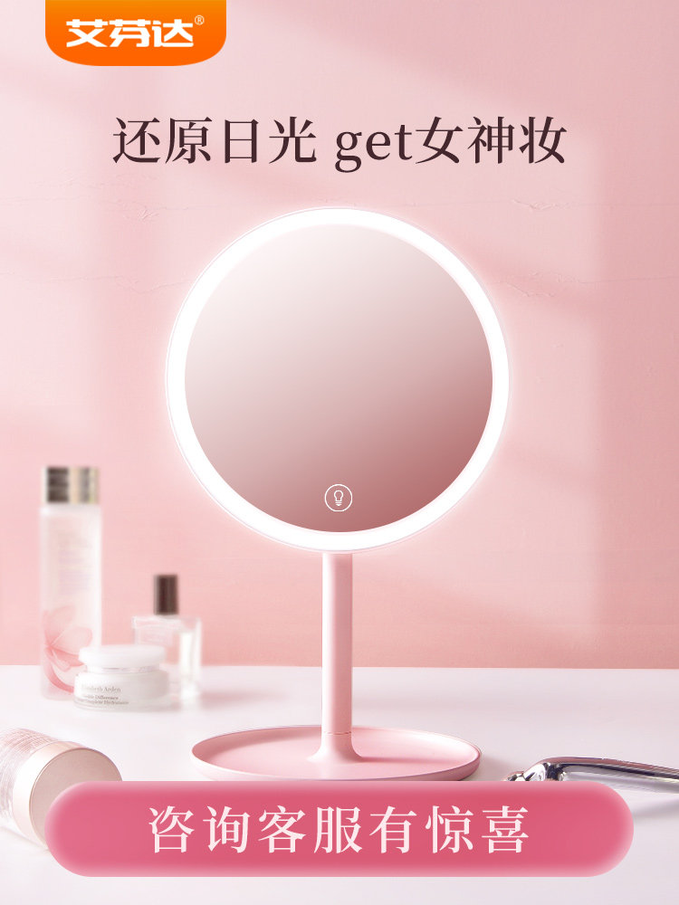 Affenda net red makeup mirror desktop desktop led light vanity mirror small fairy mirror beauty makeup mirror with light magnifying glass