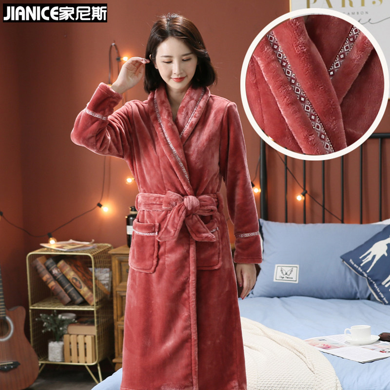 Home Ness Pyjamas Women's Autumn Winter Coral Suede Bathrobe Women's Long Version Flannel Sleeping Robe Woman Winter Thick Home Clothing