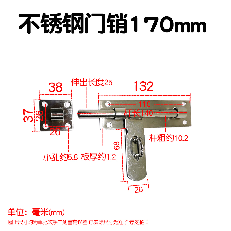 Stainless steel clear bolt door buttoned door bolt wooden door security door latch door latch door latch dressing room thickened old-fashioned door pin buckle