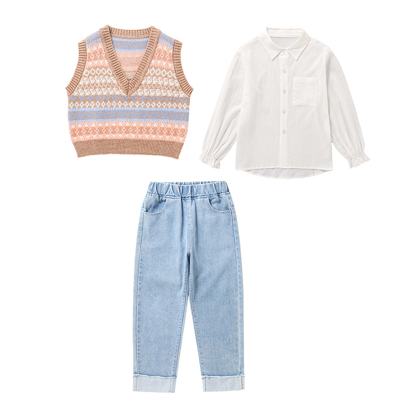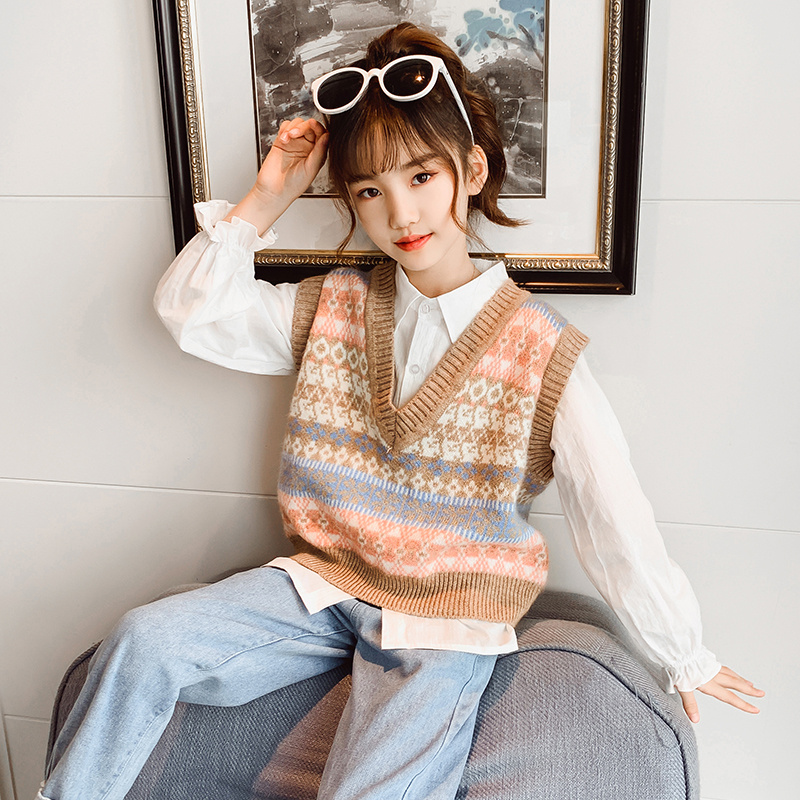 Blue roll-up wide-leg pants (one piece) Pink(sweater vest shirt)Navy blue (Sweater vest shirt)Pink(sweater vest shirt pants) Navy blue(Sweater vest