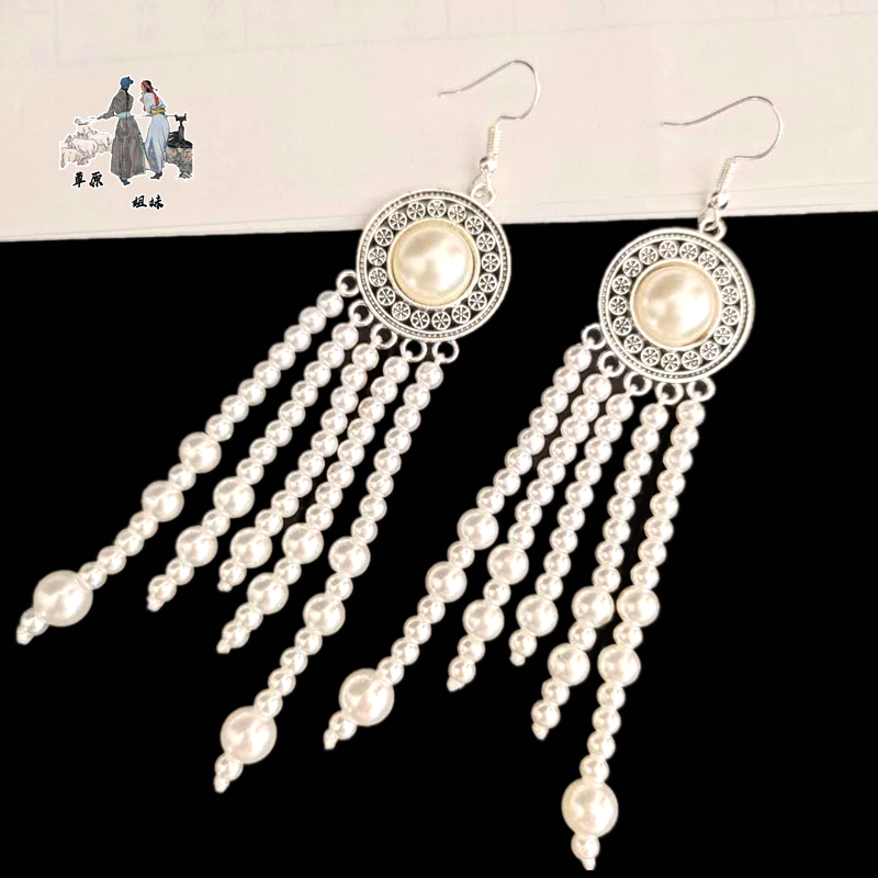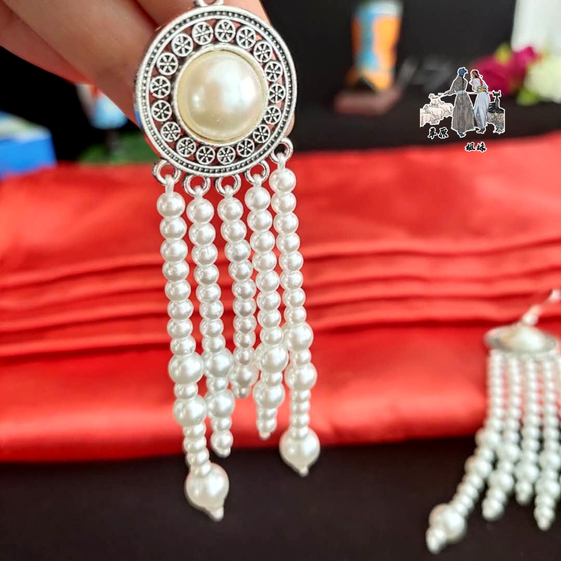 Mongolian Elements Ethnic Wind Female Style Short Irregular Earrings White Imitation Pearl Earrings Daily Performance Ornament