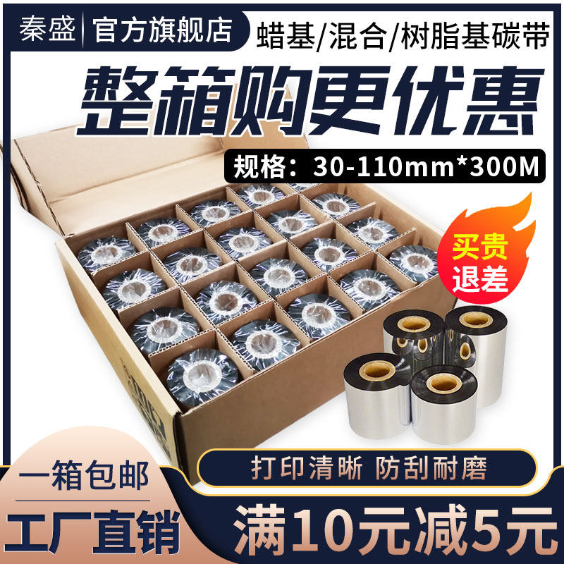 Qinsheng wax-based mixed resin-based ribbon roll 110*300m 40 50 60 70 80 90 100mm Barcode printer Coated paper Self-adhesive label paper