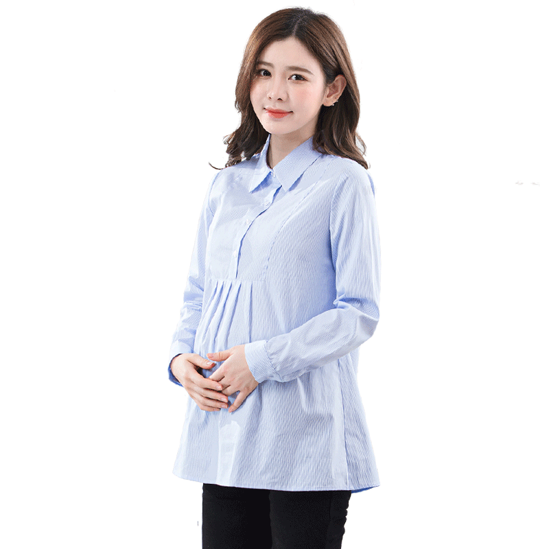 Maternity professional shirt striped long sleeves spring and autumn cotton top loose short sleeves OL work shirt overalls