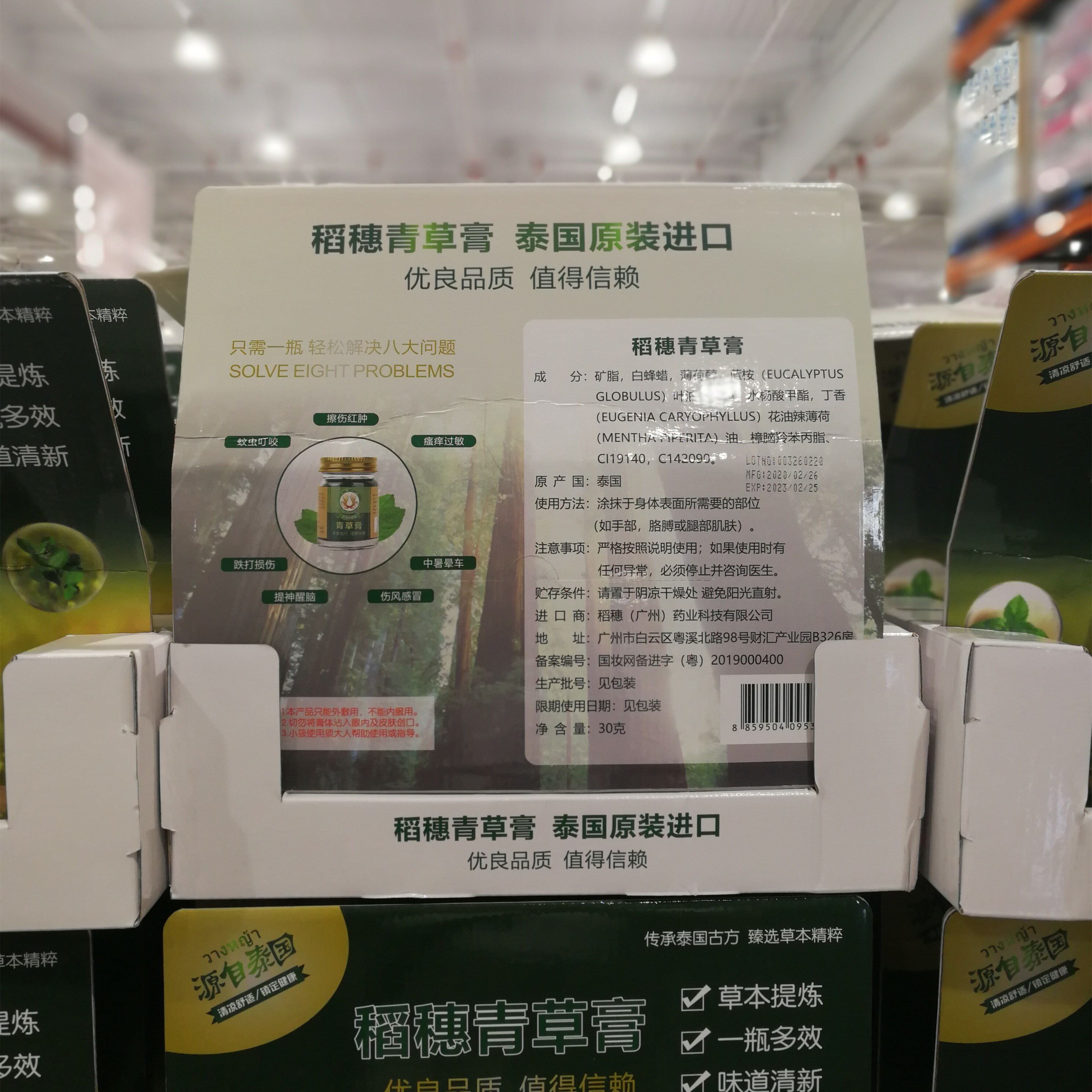 Thai original imported rice ears green straw paste 30g single bottled mosquito-proof and anti-itching Shanghai costco open city guest
