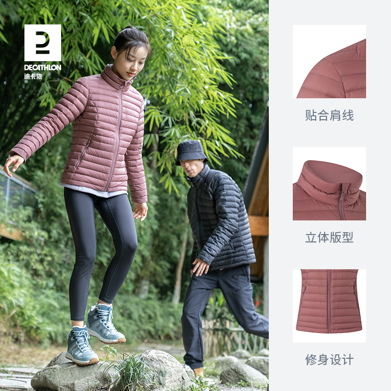 Decathlon official down jacket light and thin men's winter standing collar warm short padded jacket new sports jacket female ODT3