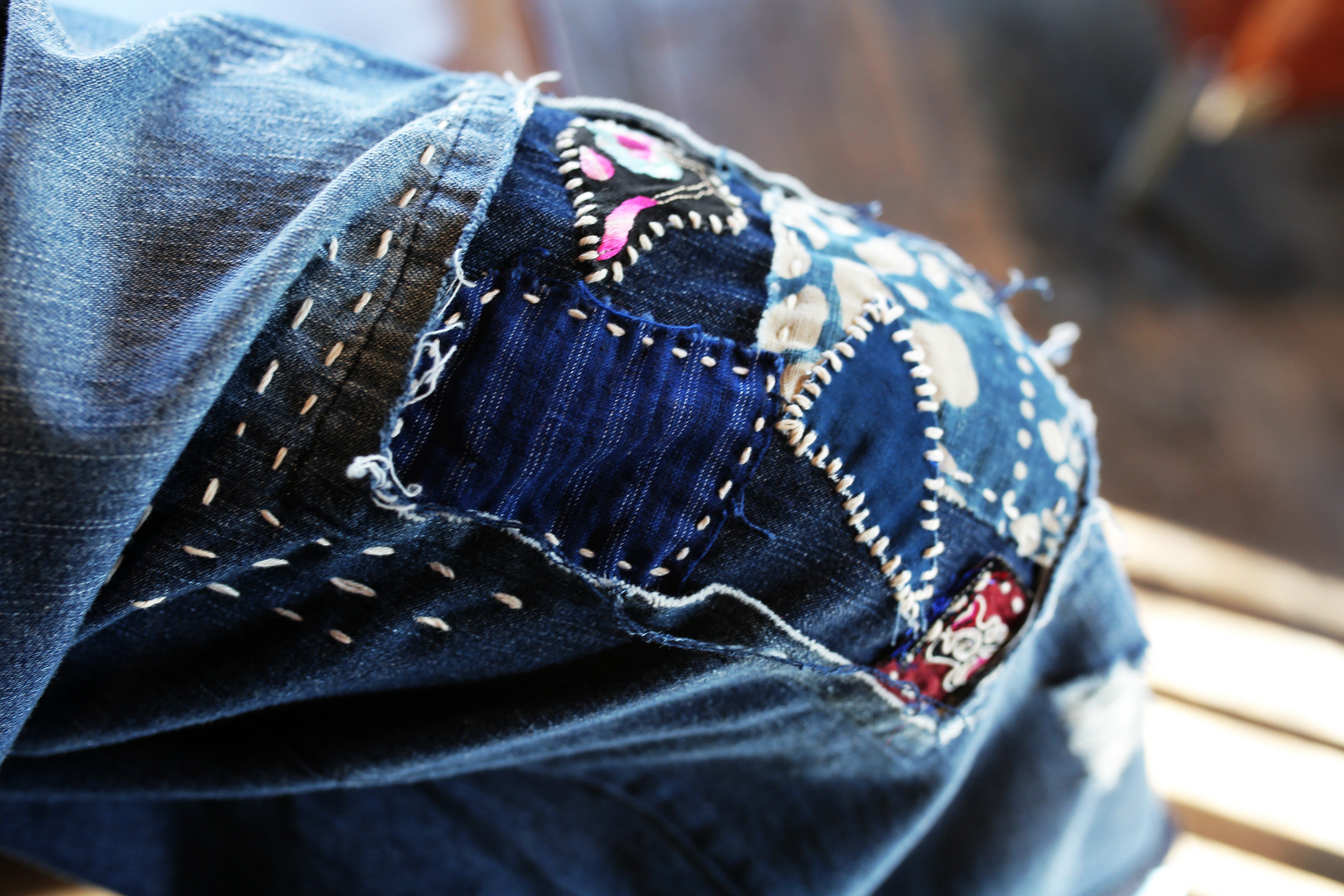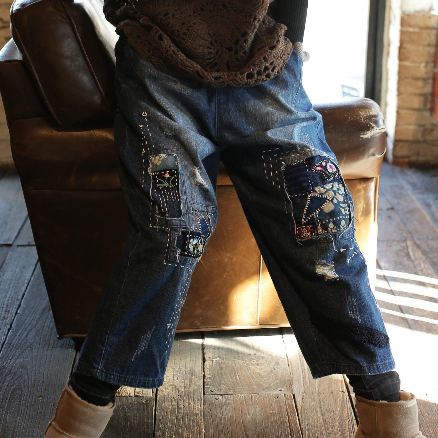 Baifu~design irregularly spliced old embroidery embroidery loose jeans boro
