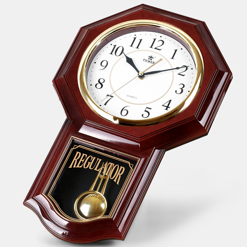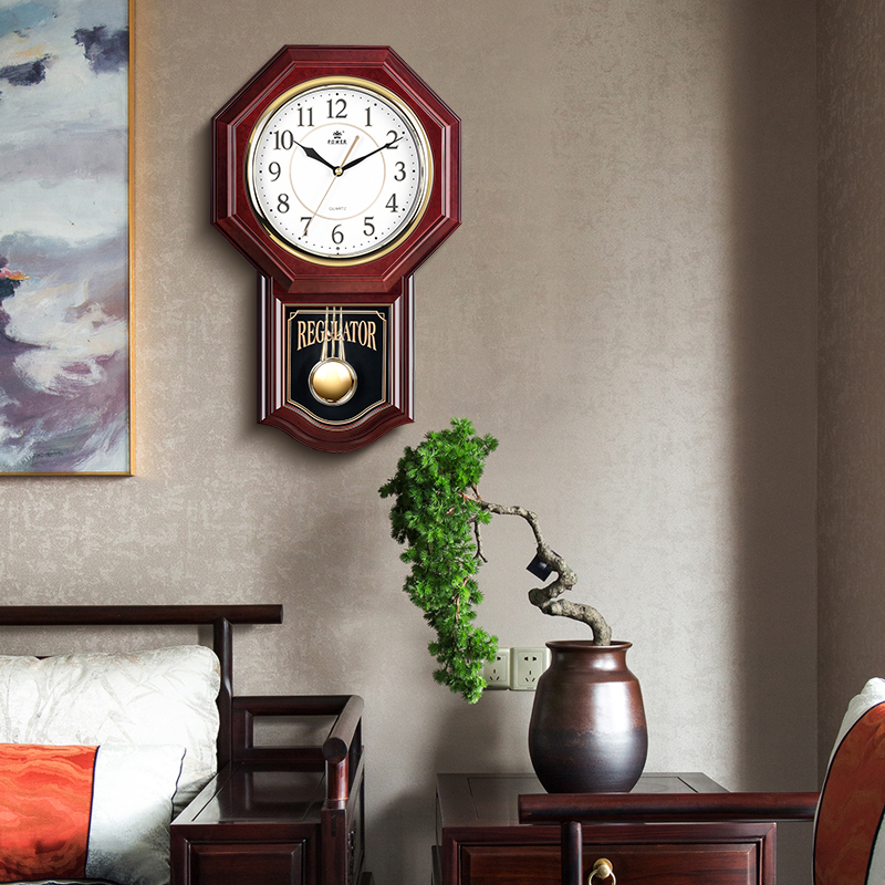 Bully and watches Chinese style retro hanging clock Living room Home China Wind imitation wood clock Music News MUTE QUARTZ CLOCK