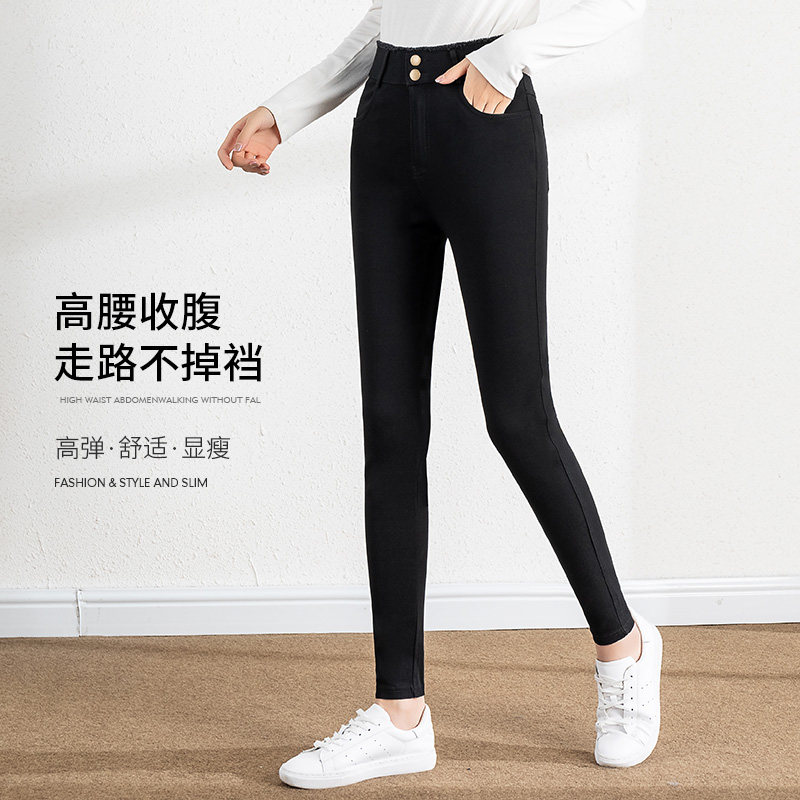 Large size women's pants chubby mm200 catty with small foot display slim high waist pencil outside wearing elastic inner lap pants spring and autumn season