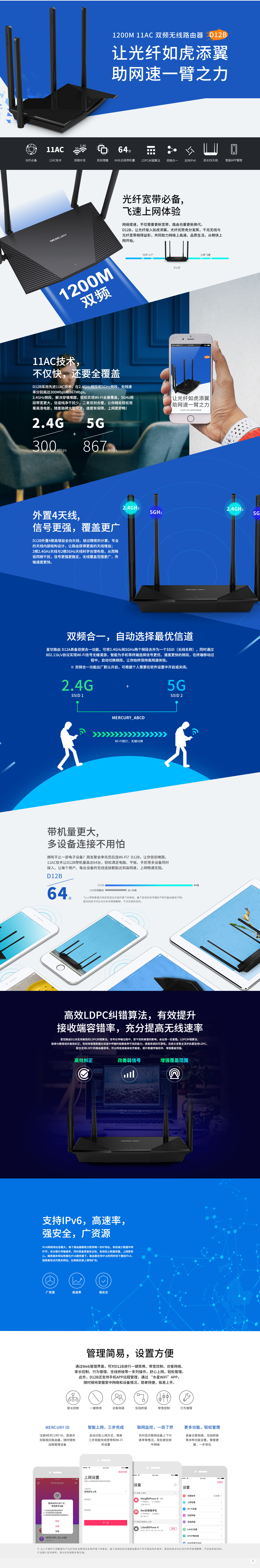 Mercury D12B D12GB 1200M 5G dual-band wireless router Gigabit wired port new Daping number