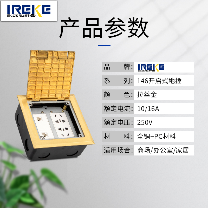 IREKE open ground socket all copper waterproof hidden 146 pentamer 10 hole audio network hdmi ground socket